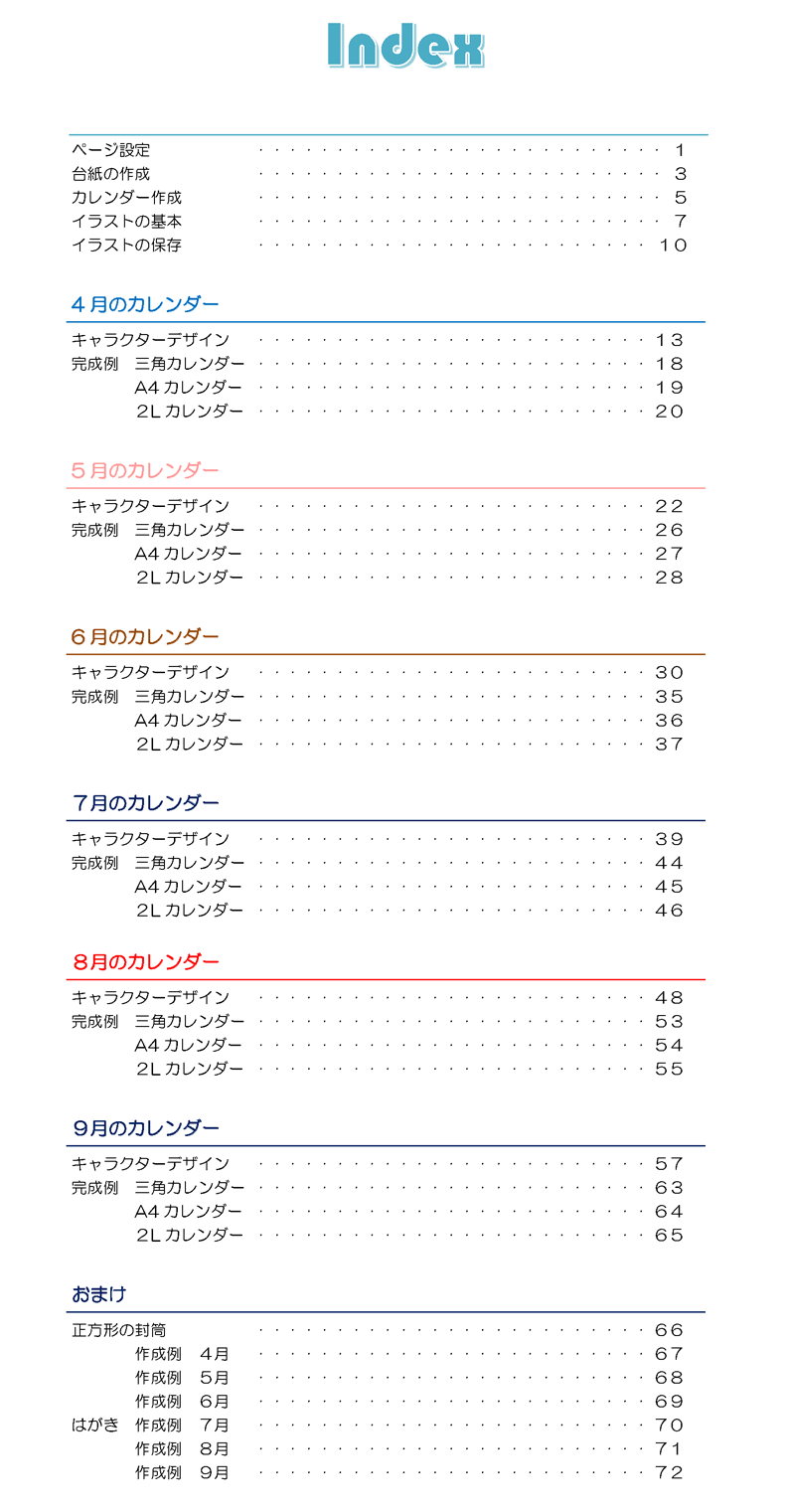 ワードで作るイラストカレンダー 4月~9月